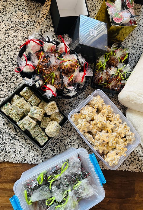 You don’t need to prove your care, your skill, or your intention by exhausting yourself. Sometimes the most generous act is stopping before the system collapses. So this year, I stopped, and I even managed to do it when planned. (With that later rice cereal treat addition, of course.) Then I packaged what was made. I stacked the boxes. I cleaned the counter.
